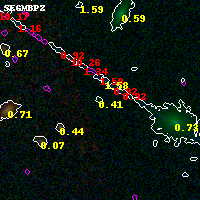 Object #1011 x,y = (3268, 3671) RA, Dec = (01:37:22.008, -8:26:11.40) = (24.34170, -8.43650) BPZ = 0.406 [0.127--3.525] type = 8.80 (SB2_B10 - SB1_B10) chisq2 = 0.02 ODDS = 0.07 z_cluster = 0.566
