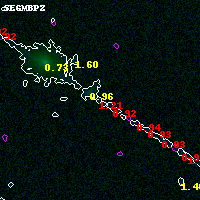 Object #1073 x,y = (3398, 3610) RA, Dec = (01:37:21.480, -8:26:15.00) = (24.33950, -8.43750) BPZ = 1.214 [0.651--2.570] type = 11.00 (SB11_A_0_l) chisq2 = 2.21 ODDS = 0.12 z_cluster = 0.566
