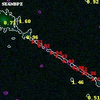 Object #1122 x,y = (3436, 3588) RA, Dec = (01:37:21.336, -8:26:16.44) = (24.33890, -8.43790) BPZ = 0.935 [0.697--2.581] type = 11.00 (SB11_A_0_l) chisq2 = 8.66 ODDS = 0.27 z_cluster = 0.566