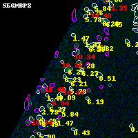 Object #1199 x,y = (1053, 3540) RA, Dec = (01:37:30.984, -8:26:19.32) = (24.37910, -8.43870) BPZ = 6.248 [6.031--6.958] type = 9.30 (SB2_B10 - SB3_B10) chisq2 = 0.00 ODDS = 0.90 z_cluster = 0.566