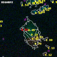Object #1228 x,y = (2112, 3550) RA, Dec = (01:37:26.688, -8:26:18.60) = (24.36120, -8.43850) BPZ = 0.447 [0.030--0.553] type = 7.80 (SB1_B10 - Scd_B10) chisq2 = 0.00 ODDS = 0.40 z_cluster = 0.566