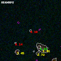 Object #1425 x,y = (2967, 3373) RA, Dec = (01:37:23.232, -8:26:29.40) = (24.34680, -8.44150) BPZ = 0.099 [0.083--2.159] type = 11.00 (SB11_A_0_l) chisq2 = 3.06 ODDS = 0.29 z_cluster = 0.566