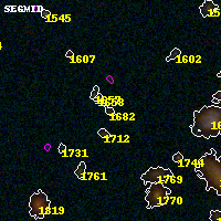 Object #1682 x,y = (1745, 3219) RA, Dec = (01:37:28.176, -8:26:38.40) = (24.36740, -8.44400) BPZ = 0.769 [0.383--4.561] type = 9.00 (SB2_B10) chisq2 = 1.26 ODDS = 0.31 z_cluster = 0.566