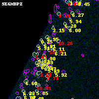 Object #1713 x,y = (871, 3199) RA, Dec = (01:37:31.704, -8:26:39.84) = (24.38210, -8.44440) BPZ = 10.363 [10.260--10.385] type = 4.00 (Ell4_A_0) chisq2 = 900.00 ODDS = 1.00 z_cluster = 0.566