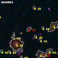 Object #1858 x,y = (1368, 3128) RA, Dec = (01:37:29.688, -8:26:43.80) = (24.37370, -8.44550) BPZ = 0.772 [0.502--4.197] type = 8.20 (SB1_B10 - SB2_B10) chisq2 = 1.24 ODDS = 0.40 z_cluster = 0.566