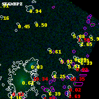 Object #1947 x,y = (4615, 2990) RA, Dec = (01:37:16.560, -8:26:52.08) = (24.31900, -8.44780) BPZ = 5.609 [2.232--6.037] type = 7.70 (SB1_B10 - Scd_B10) chisq2 = 0.00 ODDS = 0.34 z_cluster = 0.566
