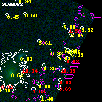 Object #2017 x,y = (4638, 2970) RA, Dec = (01:37:16.488, -8:26:53.52) = (24.31870, -8.44820) BPZ = 5.916 [2.628--8.952] type = 6.00 (Sbc_B10) chisq2 = 0.01 ODDS = 0.28 z_cluster = 0.566