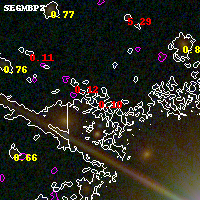 Object #2157 x,y = (2555, 2888) RA, Dec = (01:37:24.888, -8:26:58.20) = (24.35370, -8.44950) BPZ = 0.097 [0.076--0.244] type = 11.00 (SB11_A_0_l) chisq2 = 4.82 ODDS = 0.75 z_cluster = 0.566