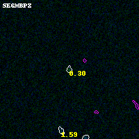 Object #2353 x,y = (3715, 3019) RA, Dec = (01:37:20.208, -8:26:50.64) = (24.33420, -8.44740) BPZ = 0.302 [0.222--3.548] type = 8.80 (SB2_B10 - SB1_B10) chisq2 = 0.50 ODDS = 0.13 z_cluster = 0.566