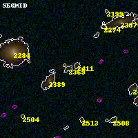 Object #2369 x,y = (1902, 2784) RA, Dec = (01:37:27.552, -8:27:04.68) = (24.36480, -8.45130) BPZ = 1.153 [0.391--3.312] type = 9.40 (SB2_B10 - SB3_B10) chisq2 = 1.38 ODDS = 0.09 z_cluster = 0.566