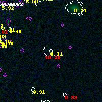 Object #2448 x,y = (756, 2744) RA, Dec = (01:37:32.184, -8:27:06.84) = (24.38410, -8.45190) BPZ = 0.308 [0.138--3.382] type = 9.50 (SB3_B10 - SB2_B10) chisq2 = 0.03 ODDS = 0.06 z_cluster = 0.566