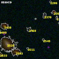 Object #2468 x,y = (3188, 2731) RA, Dec = (01:37:22.344, -8:27:07.92) = (24.34310, -8.45220) BPZ = 2.788 [2.621--3.069] type = 9.70 (SB3_B10 - SB2_B10) chisq2 = 1.40 ODDS = 0.77 z_cluster = 0.566