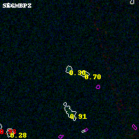 Object #2712 x,y = (1359, 2613) RA, Dec = (01:37:29.736, -8:27:14.76) = (24.37390, -8.45410) BPZ = 0.301 [0.245--3.410] type = 8.80 (SB2_B10 - SB1_B10) chisq2 = 0.29 ODDS = 0.16 z_cluster = 0.566