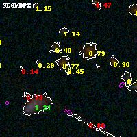 Object #2968 x,y = (2304, 3038) RA, Dec = (01:37:25.920, -8:26:49.56) = (24.35800, -8.44710) BPZ = 0.446 [0.120--3.870] type = 9.80 (SB3_B10 - SB2_B10) chisq2 = 0.50 ODDS = 0.28 z_cluster = 0.566