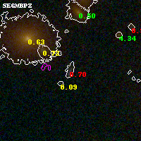 Object #2999 x,y = (2301, 2478) RA, Dec = (01:37:25.920, -8:27:23.04) = (24.35800, -8.45640) BPZ = 0.698 [0.531--0.976] type = 11.00 (SB11_A_0_l) chisq2 = 1.12 ODDS = 0.41 z_cluster = 0.566