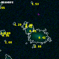 Object #3110 x,y = (830, 2423) RA, Dec = (01:37:31.872, -8:27:26.28) = (24.38280, -8.45730) BPZ = 0.913 [0.819--1.430] type = 7.80 (SB1_B10 - Scd_B10) chisq2 = 0.00 ODDS = 0.55 z_cluster = 0.566