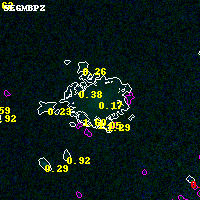 Object #3130 x,y = (4219, 2372) RA, Dec = (01:37:18.168, -8:27:29.16) = (24.32570, -8.45810) BPZ = 0.173 [0.043--2.446] type = 8.40 (SB1_B10 - SB2_B10) chisq2 = 0.00 ODDS = 0.43 z_cluster = 0.566