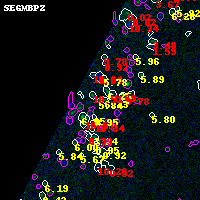Object #3185 x,y = (422, 2368) RA, Dec = (01:37:33.528, -8:27:29.52) = (24.38970, -8.45820) BPZ = 5.839 [2.811--8.554] type = 7.90 (SB1_B10 - Scd_B10) chisq2 = 0.00 ODDS = 0.36 z_cluster = 0.566
