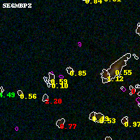 Object #3250 x,y = (1987, 2340) RA, Dec = (01:37:27.192, -8:27:31.32) = (24.36330, -8.45870) BPZ = 0.849 [0.197--1.311] type = 9.80 (SB3_B10 - SB2_B10) chisq2 = 0.61 ODDS = 0.25 z_cluster = 0.566
