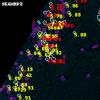 Object #3301 x,y = (426, 2318) RA, Dec = (01:37:33.504, -8:27:32.40) = (24.38960, -8.45900) BPZ = 0.915 [0.494--2.309] type = 8.60 (SB2_B10 - SB1_B10) chisq2 = 0.75 ODDS = 0.22 z_cluster = 0.566