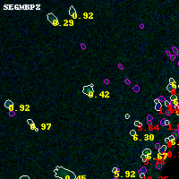 Object #3507 x,y = (4205, 2229) RA, Dec = (01:37:18.216, -8:27:37.80) = (24.32590, -8.46050) BPZ = 0.421 [0.336--0.472] type = 2.90 (Ell5_A_0 - Ell6_A_0) chisq2 = 0.00 ODDS = 0.86 z_cluster = 0.566