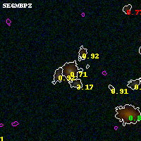 Object #3593 x,y = (1893, 2176) RA, Dec = (01:37:27.576, -8:27:41.04) = (24.36490, -8.46140) BPZ = 0.709 [0.598--0.799] type = 7.70 (SB1_B10 - Scd_B10) chisq2 = 0.23 ODDS = 0.78 z_cluster = 0.566