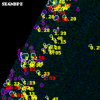 Object #374 x,y = (1457, 4254) RA, Dec = (01:37:29.328, -8:25:36.48) = (24.37220, -8.42680) BPZ = 6.047 [5.803--8.707] type = 7.00 (Scd_B10) chisq2 = 0.00 ODDS = 0.50 z_cluster = 0.566