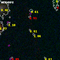 Object #3807 x,y = (3686, 2061) RA, Dec = (01:37:20.328, -8:27:47.88) = (24.33470, -8.46330) BPZ = 0.907 [0.113--2.176] type = 11.00 (SB11_A_0_l) chisq2 = 0.55 ODDS = 0.30 z_cluster = 0.566