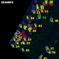 Best viewed in a wide browser window (1200 pixels or more). Download SED & P(z) plots to view larger versions.