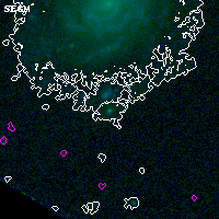 Object #4005 x,y = (595, 1778) RA, Dec = (01:37:32.832, -8:28:04.80) = (24.38680, -8.46800) BPZ = 0.573 [0.171--2.593] type = 7.90 (SB1_B10 - Scd_B10) chisq2 = 0.00 ODDS = 0.57 z_cluster = 0.566