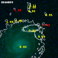 Object #4007 x,y = (627, 1929) RA, Dec = (01:37:32.688, -8:27:55.80) = (24.38620, -8.46550) BPZ = 0.220 [0.124--0.430] type = 8.40 (SB1_B10 - SB2_B10) chisq2 = 0.00 ODDS = 0.47 z_cluster = 0.566