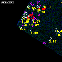 Object #4106 x,y = (204, 1909) RA, Dec = (01:37:34.416, -8:27:57.24) = (24.39340, -8.46590) BPZ = 5.895 [3.215--8.720] type = 7.80 (SB1_B10 - Scd_B10) chisq2 = 0.00 ODDS = 0.40 z_cluster = 0.566