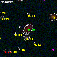 Object #4137 x,y = (3315, 1877) RA, Dec = (01:37:21.816, -8:27:59.04) = (24.34090, -8.46640) BPZ = 2.018 [1.966--2.080] type = 5.50 (Sbc_B10 - ES0_B10) chisq2 = 0.09 ODDS = 1.00 z_cluster = 0.566