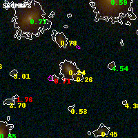 Object #4141 x,y = (2425, 1876) RA, Dec = (01:37:25.416, -8:27:59.04) = (24.35590, -8.46640) BPZ = 0.240 [0.113--0.450] type = 4.00 (Ell4_A_0) chisq2 = 0.29 ODDS = 0.70 z_cluster = 0.566
