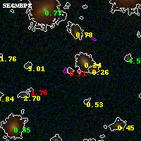 Object #4188 x,y = (2404, 1864) RA, Dec = (01:37:25.512, -8:27:59.76) = (24.35630, -8.46660) BPZ = 0.706 [0.261--4.382] type = 9.00 (SB2_B10) chisq2 = 1.34 ODDS = 0.20 z_cluster = 0.566