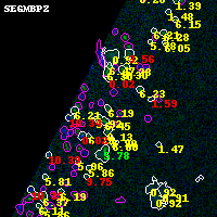 Object #420 x,y = (1405, 4194) RA, Dec = (01:37:29.544, -8:25:40.08) = (24.37310, -8.42780) BPZ = 6.192 [5.822--8.809] type = 6.00 (Sbc_B10) chisq2 = 0.00 ODDS = 0.42 z_cluster = 0.566