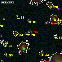 Object #4234 x,y = (2349, 1837) RA, Dec = (01:37:25.728, -8:28:01.56) = (24.35720, -8.46710) BPZ = 1.764 [0.044--2.749] type = 11.00 (SB11_A_0_l) chisq2 = 1.98 ODDS = 0.25 z_cluster = 0.566