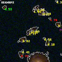 Object #4262 x,y = (3510, 1810) RA, Dec = (01:37:21.024, -8:28:03.00) = (24.33760, -8.46750) BPZ = 2.724 [2.539--3.061] type = 9.70 (SB3_B10 - SB2_B10) chisq2 = 0.35 ODDS = 0.67 z_cluster = 0.566