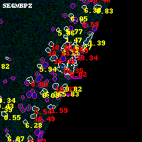 Object #4316 x,y = (4091, 1756) RA, Dec = (01:37:18.696, -8:28:06.24) = (24.32790, -8.46840) BPZ = 0.016 [0.010--0.036] type = 11.00 (SB11_A_0_l) chisq2 = 74.13 ODDS = 1.00 z_cluster = 0.566