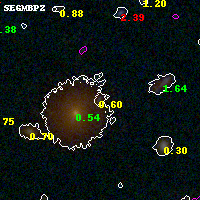 Object #4335 x,y = (3095, 1792) RA, Dec = (01:37:22.704, -8:28:04.08) = (24.34460, -8.46780) BPZ = 0.602 [0.122--0.802] type = 7.50 (SB1_B10 - Scd_B10) chisq2 = 0.08 ODDS = 0.44 z_cluster = 0.566