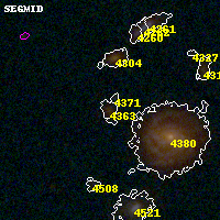 Object #4363 x,y = (3479, 1734) RA, Dec = (01:37:21.168, -8:28:07.68) = (24.33820, -8.46880) BPZ = 0.777 [0.527--4.343] type = 7.50 (SB1_B10 - Scd_B10) chisq2 = 1.08 ODDS = 0.43 z_cluster = 0.566