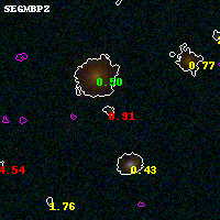 Object #4390 x,y = (2776, 1728) RA, Dec = (01:37:24.000, -8:28:08.04) = (24.35000, -8.46890) BPZ = 0.905 [0.623--5.244] type = 9.00 (SB2_B10) chisq2 = 1.23 ODDS = 0.26 z_cluster = 0.566