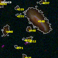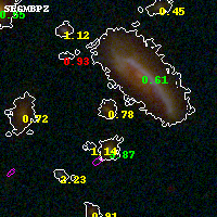 Object #4448 x,y = (2425, 1692) RA, Dec = (01:37:25.416, -8:28:10.20) = (24.35590, -8.46950) BPZ = 0.780 [0.658--0.921] type = 7.50 (SB1_B10 - Scd_B10) chisq2 = 0.08 ODDS = 0.74 z_cluster = 0.566