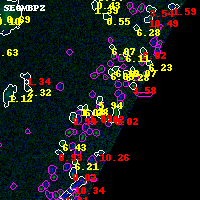 Object #4608 x,y = (3990, 1611) RA, Dec = (01:37:19.104, -8:28:14.88) = (24.32960, -8.47080) BPZ = 5.942 [5.714--8.577] type = 5.20 (ES0_B10 - Sbc_B10) chisq2 = 0.00 ODDS = 0.47 z_cluster = 0.566