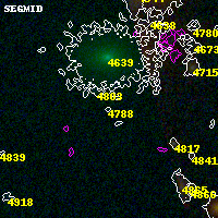 Object #4788 x,y = (1671, 1509) RA, Dec = (01:37:28.464, -8:28:21.00) = (24.36860, -8.47250) BPZ = 0.948 [0.624--10.105] type = 2.00 (Ell6_A_0) chisq2 = 1.77 ODDS = 0.09 z_cluster = 0.566