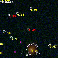 Object #5133 x,y = (1806, 1263) RA, Dec = (01:37:27.936, -8:28:35.76) = (24.36640, -8.47660) BPZ = 0.448 [0.129--4.237] type = 9.40 (SB2_B10 - SB3_B10) chisq2 = 1.03 ODDS = 0.16 z_cluster = 0.566