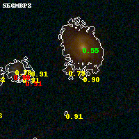 Object #5188 x,y = (2321, 1153) RA, Dec = (01:37:25.848, -8:28:42.60) = (24.35770, -8.47850) BPZ = 0.789 [0.205--0.968] type = 7.20 (Scd_B10 - SB1_B10) chisq2 = 0.41 ODDS = 0.33 z_cluster = 0.566