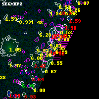 Object #5192 x,y = (3811, 1214) RA, Dec = (01:37:19.824, -8:28:38.64) = (24.33260, -8.47740) BPZ = 0.036 [0.025--3.525] type = 10.50 (SB11_A_0_l - SB3_B10) chisq2 = 11.88 ODDS = 0.08 z_cluster = 0.566