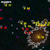 Object #5362 x,y = (1992, 1077) RA, Dec = (01:37:27.168, -8:28:46.92) = (24.36320, -8.47970) BPZ = 2.789 [0.152--3.287] type = 9.70 (SB3_B10 - SB2_B10) chisq2 = 0.15 ODDS = 0.22 z_cluster = 0.566