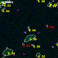 Object #5367 x,y = (3297, 1061) RA, Dec = (01:37:21.888, -8:28:48.00) = (24.34120, -8.48000) BPZ = 0.659 [0.160--3.245] type = 9.10 (SB2_B10 - SB3_B10) chisq2 = 0.07 ODDS = 0.07 z_cluster = 0.566